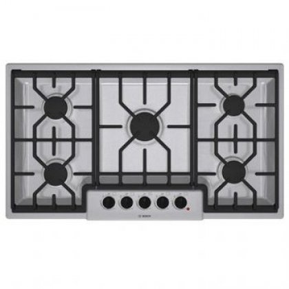 NGM5654UC Finish: Stainless Steel Features •Specifications Installation •Warranty Back To Top Features -Optisim Simmer delicate sauces without scorching (400 BTU). -Centralized controls for easy use and more intuitive operation of cooktop. -High quality color matched knobs with a stainless bezel. -Cooktop design coordinates with bosch wall ovens. -Low-profile design for a more integrated appearance. -Automatic electronic re-ignition - in case flame goes out the burner is automatically re-ignited. -Continuous Grates - effortlessly move pots and pans. easy to clean. -Sealed burners prevent spills from entering the burner box. Back To Top Specifications Product Specifications Product Type: Gas Cooktop Finish:White, stainless steel , black