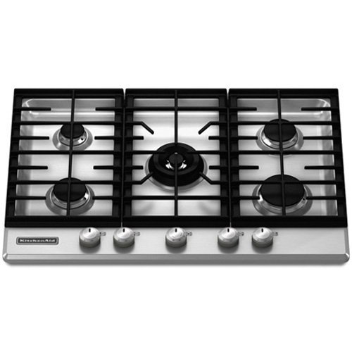 I've had this cooktop for a couple months now, and here's what I think:Pros:1. It looks really cool. Yup, between the five burners and the great grate, it is a piece of art.2. It cooks just dandy; no complaints.Cons:1. The control knobs are slightly higher than the grate, meaning if you put something on the grate and it overlaps the knobs, the ignition clicking is initiated.2. There is no "on" light in case some inattentive family member (never the main cook, of course!) leaves a burner on low and fails to notice.3. There is no safety "off" childproof switch. (some GE applicances have this).4. The Kitchenaid logo piece is three-dimensional and in the lower corner, meaning it is just asking to get dirty and be hard to clean. Flat, or in an upper corner, would have been preferable.