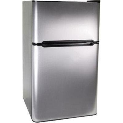 Haier HNDE03VS 3.3 -Cubic Feet Compact Refrigerator / Freezer - Silver Introducing the space saving Haier 3. 3 -Cubic Feet Compact Refrigerator, the solution for your work room, dorm or office refrigeration needs. This compact, virtual steel 2-door refrigerator/freezer provides convenient access to food and beverages. Two full-width glass refrigerator shelves and one full-width freezer shelf keeps items organized and within reach. The Haier refrigerator provides convenient storage and access to those cold drinks with 2-Liter Bottle Storage and the Dispense-A-Can bin that holds up to 6 cans. A separate crisper bin helps keep produce fresh longer and an interior refrigerator light helps you view contents easily. The HNDE03VS has an adjustable thermostat which lets you set the desired refrigerator and freezer temperatures, and the separate True-Freezer compartment can get as cold as full-size units. Get the Haier 3. 3 -Cubic Feet Compact Refrigerator and Freezer for your home or office today! Dimensions in inches 19. 5 D by 19. 1 W by 33. 9 H