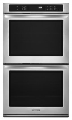 KitchenAid KEBS277BSS 27" Double Electric Wall Oven with 4.3 cu. ft. Capacity, True Convection, 2 Racks per Oven, Hidden Element, Self-Cleaning, Halogen Lighting and Glass-Touch Display